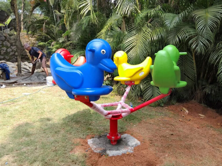 Made from fiberglass-reinforced plastic (FRP), powder-coated steel, and durable bearings, it ensures safety, stability, and weather resistance. Available in various sizes and colorful designs, it enhances imaginative play, balance, and coordination. Suitable for parks, playgrounds, and amusement areas, it provides a fun, engaging experience for young children.