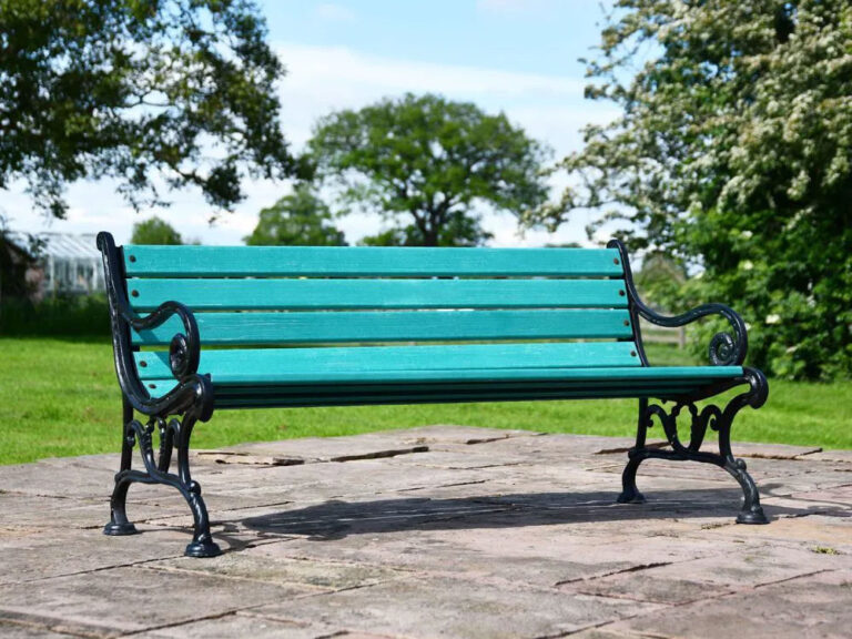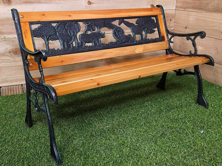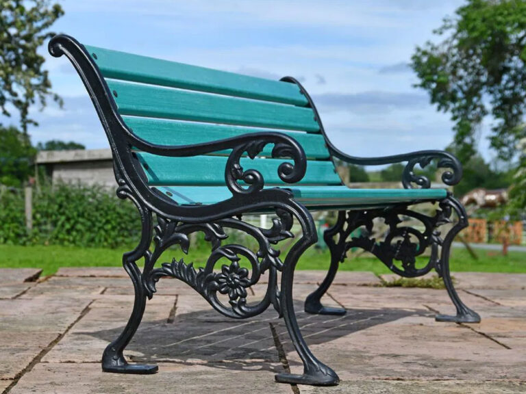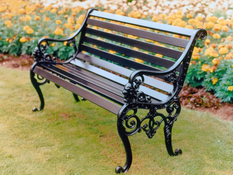 Material: The frame is made of high-quality cast iron with a powder-coated finish for rust and weather resistance. The seat and backrest can be made of wood (teak, oak), metal, or composite materials, ensuring durability and aesthetic appeal.